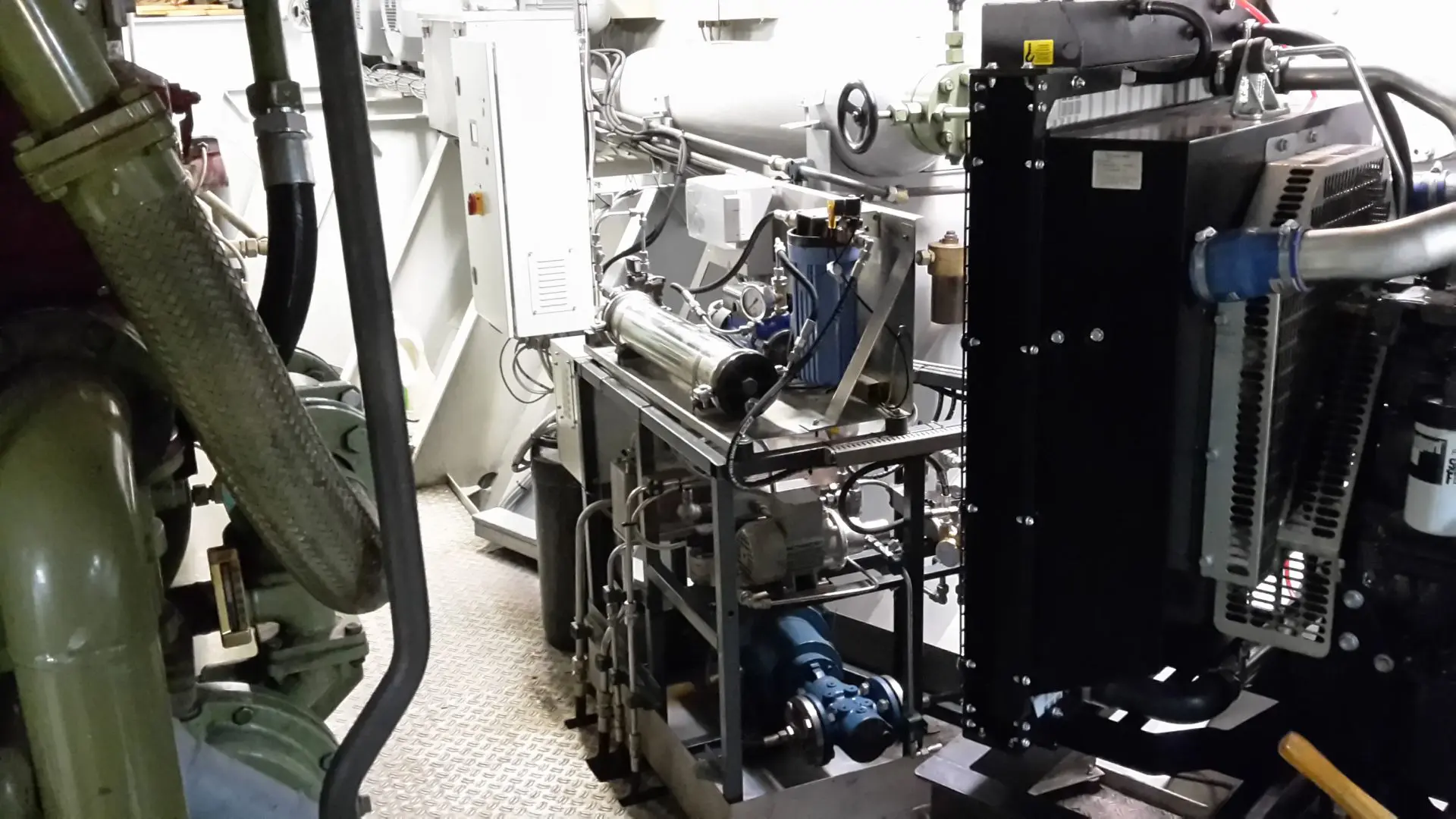 Die MS Aarburg mit einem starken ABC MDZC 166A mit 1.326 kW ist bei voller Container-Beladung eine imposante Erscheinung auf dem Rhein. Einbau, Wartung, Reparatur, Messungen. Alles schwierig bei einem eng getakteten Hafenplan. Die Container müssen zum richtigen Zeitpunkt am richtigen Platz sein. Ziel der Reederei Deymann bei diesem Schiff war die Erreichung der ZKR II-Norm mit KWE. Kein Problem, das konnte erreicht werden. Auch bei der Aarburg flossen einige Updates, insbesondere bei der Prozesswasserherstellung mit ein. Herausfordernd bei diesem Schiff waren sehr wenige Platz im Maschinenraum sowie die thermische Belastung unserer Komponenten. Wegen Platzmangel mussten wichtige Komponenten unterflur verlegt werden. Schaltschrank und Tanks wurden wegen hoher Temperaturbelastung isoliert und dem Schaltschrank wurde zusätzlich eine Klimaanlage spendiert.